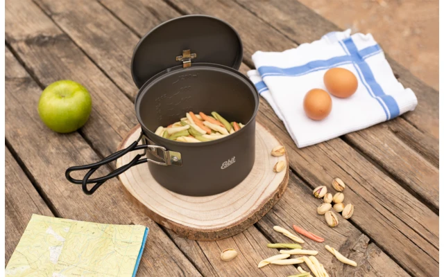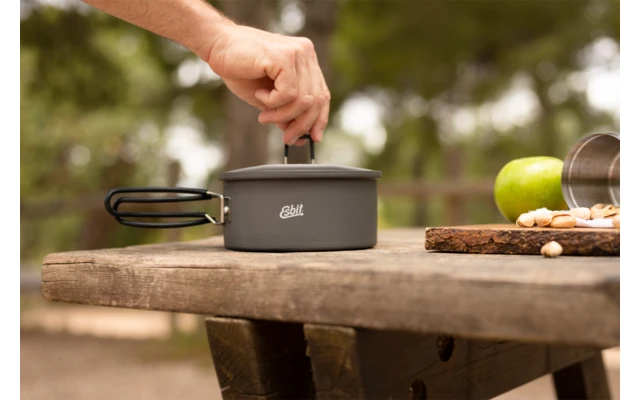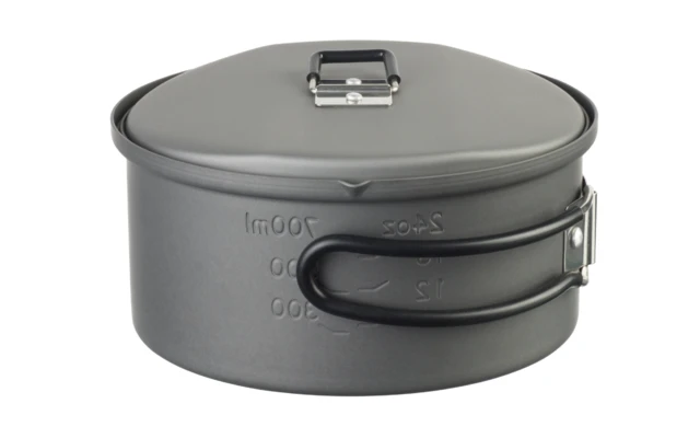 So unbeschwert wie die Zeit in der Natur sollte auch das Gepäck sein. Daher sind unsere Töpfe aus extrem leichtem, hartanodisiertem Aluminium die richtige Wahl. Sie wiegen jeweils nur etwa 227 g (1100 ml) und 258 g (1600 ml). Das Volumen wird im Inneren des Topfes in ml und oz angegeben.