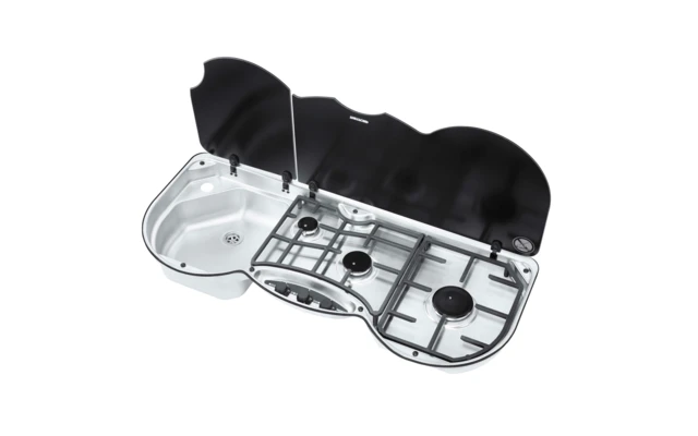 Die Serie 353 von Thetford kombiniert erfolgreich drei Brenner und ein Spülbecken. Die Kombinationsserie 353 verleiht der Freizeitküche einen Anblick, bei dem man sich wie zu Hause fühlt. Die beiden Teile des Glasdeckels lassen sich separat schließen und bieten somit zusätzliche Arbeitsfläche oder Platz für das Aufräumen. Das Kochfeld bietet zudem Platz für größere Pfannen – ganz wie zu Hause. Eine einhändig bedienbare Elektrozündung erleichtert das Einschalten der Brenner und die gesamte Kombination ist robust und einfach zu reinigen.